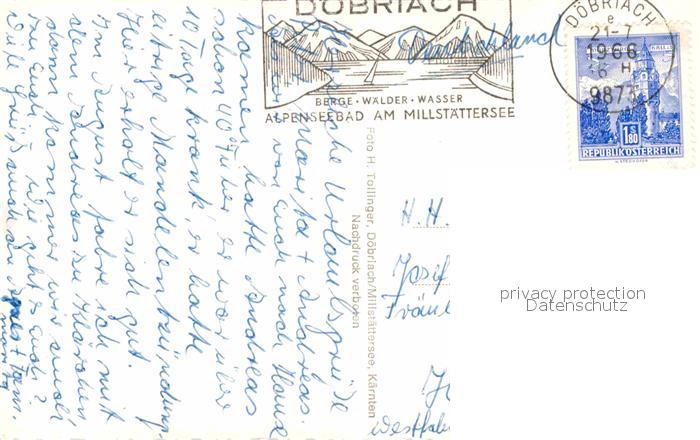 72900621 alte Postkarte Doebriach Millstaettersee Fliegeraufnahme See Abendstimmung postalisch gelaufen Erhaltung siehe scans [AndreD76] KatCode: 11390212020630