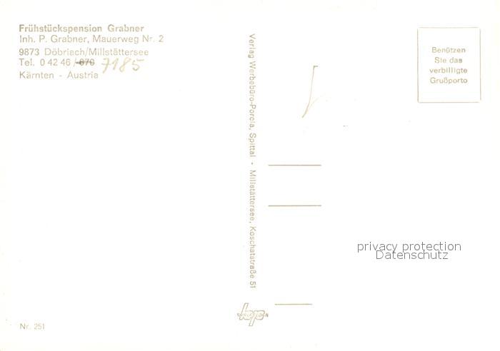 73320629 Doebriach Millstaettersee Fruehstueckspension Grabner postalisch nicht gelaufen Erhaltung siehe scans [PaolaD17] KatCode: 11390212020630