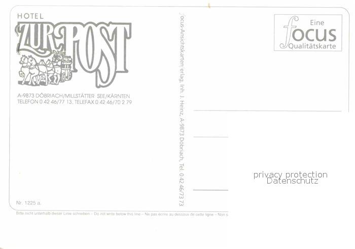 72899296 Doebriach Millstaettersee Hotel Post Schwan Fliegeraufnahme postalisch nicht gelaufen Erhaltung siehe scans [NatalD47] KatCode: 11390212020630