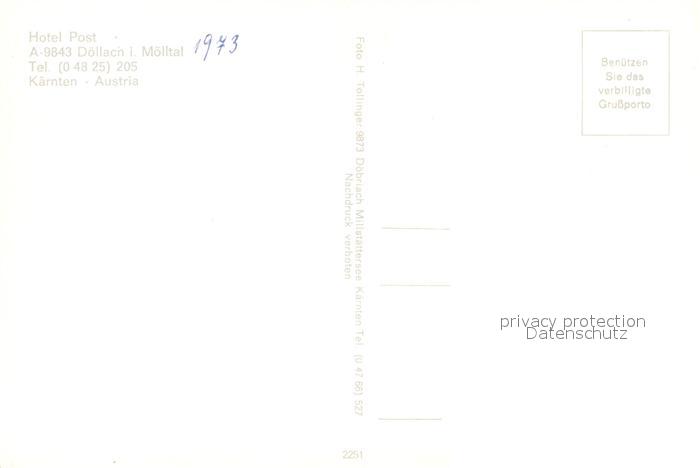 73481271 Doellach Kaernten Hotel Post postalisch nicht gelaufen Erhaltung siehe scans [KathaD81] KatCode: 11390