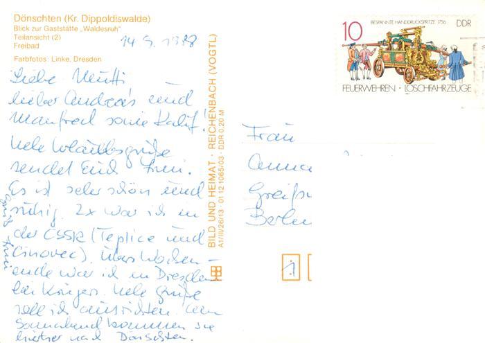73908067 alte Postkarte Doenschten Gaststaette Waldesruh Teilansicht Freibad postalisch gelaufen Erhaltung siehe scans [WerneD78] KatCode: 11110014290410