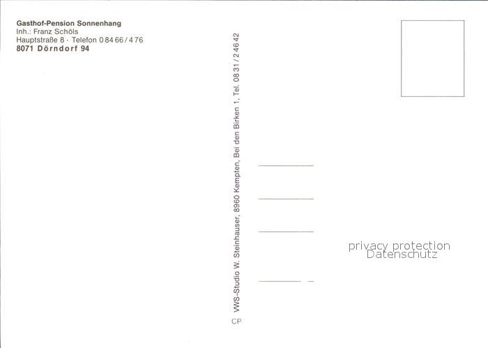72566464 Doerndorf Mittelfranken Gasthaus Pension Sonnenhang postalisch nicht gelaufen Erhaltung siehe scans [LiesaD40] KatCode: 11110009176120