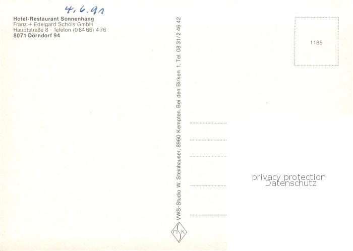 73845985 Doerndorf Mittelfranken Hotel Restaurant Cafe Sonnenhang postalisch nicht gelaufen Erhaltung siehe scans [FriedD77] KatCode: 11110009176120