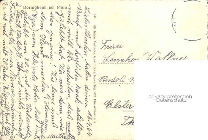72176511 alte Postkarte Doernigheim Backesweg Hanauer Landstr Kath Kirche Hochhaeuser Ev Kirche Wilhelmsbaderstr Ascherstr Frankfurter Landstr postalisch gelaufen Erhaltung siehe scans KatCode: 11110006435019