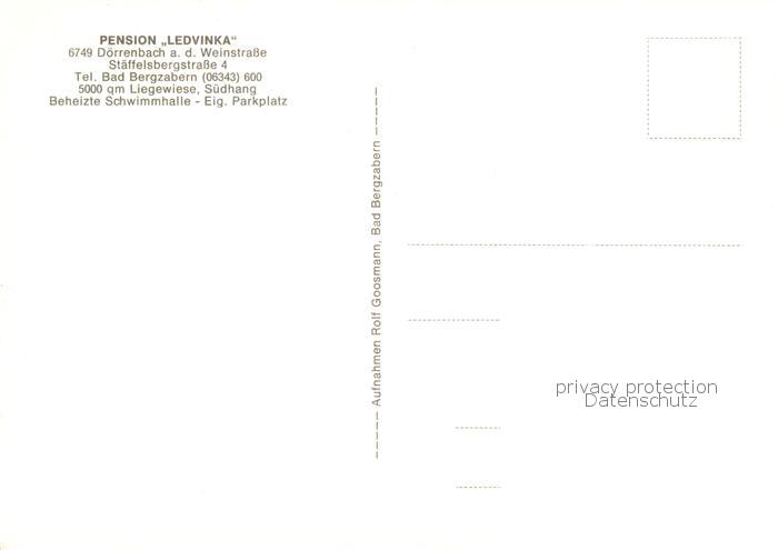 73866565 Doerrenbach Bad Bergzabern Pension Ledvinka Bungalow Hallenbad postalisch nicht gelaufen Erhaltung siehe scans [WerneD78] KatCode: 11110007337005