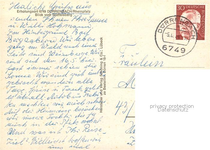 73607990 alte Postkarte Doerrenbach Blick vom Staffelsberg postalisch gelaufen Erhaltung siehe scans [WerneD78] KatCode: 11110007337005