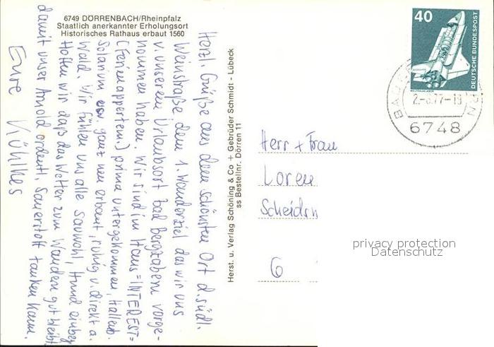 72572782 alte Postkarte Doerrenbach Historisches Rathaus postalisch gelaufen Erhaltung siehe scans [AndreD76] KatCode: 11110007337005