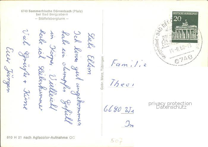 71946909 alte Postkarte Doerrenbach Staffelsbergturm postalisch gelaufen Erhaltung siehe scans KatCode: 11110007337005