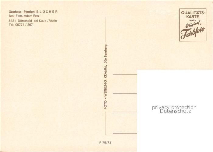 73648858 Doerscheid Gasthaus Pension Bluecher Restaurant Terrasse Freibad Panorama Rheintal Burg postalisch nicht gelaufen Erhaltung siehe scans [FriedD77] KatCode: 11110007141031