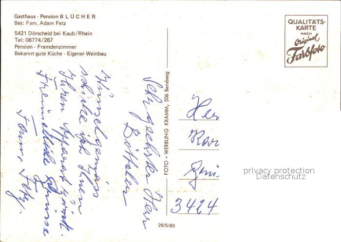 72013493 Doerscheid Gasthaus Pension Bluecher postalisch nicht gelaufen Erhaltung siehe scans KatCode: 11110007141031