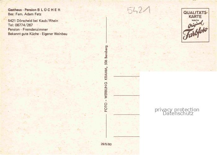74050864 alte Postkarte Doerscheid Rheinpartie Gasthaus Pension Bluecher Schwimmbad Terrasse postalisch gelaufen Erhaltung siehe scans [WerneD78] KatCode: 11110007141031