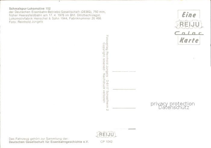 72109909 Doerzbach Schmalspur Lokomotive 152 postalisch nicht gelaufen Erhaltung siehe scans KatCode: 11110008126020
