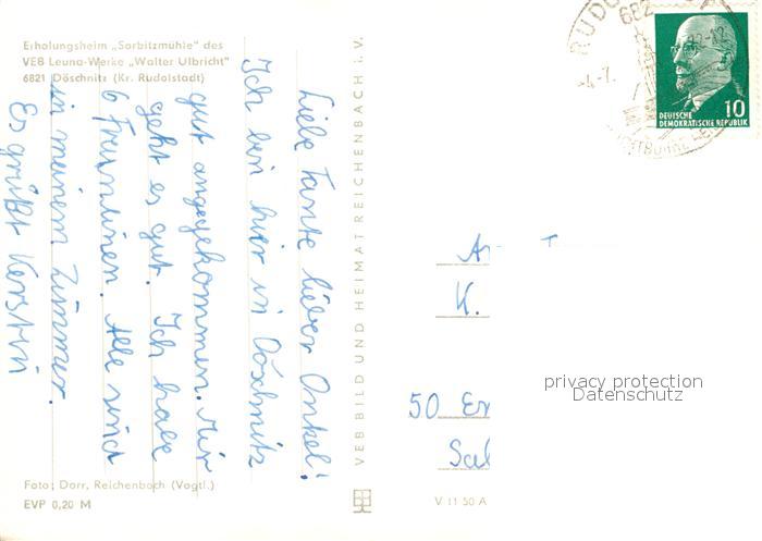73095081 alte Postkarte Doeschnitz Erholungsheim Sorbitzmuehle postalisch gelaufen Erhaltung siehe scans [KathaD81] KatCode: 11110016073017