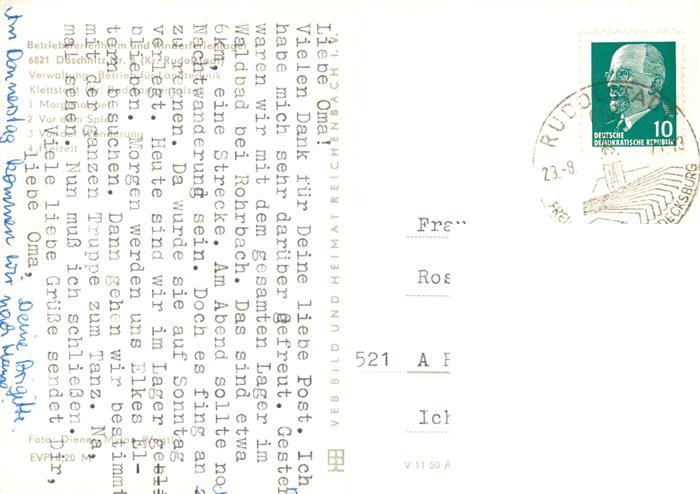 73970862 alte Postkarte Doeschnitz Thueringen Betriebsferienheim und Kinderferienlager postalisch gelaufen Erhaltung siehe scans [FriedD77] KatCode: 11110016073017