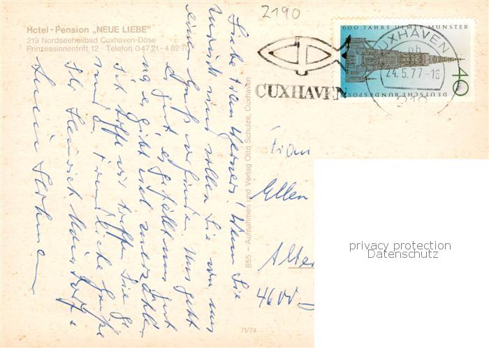73864933 alte Postkarte Doese Cuxhaven Hotel Neue Liebe Strandpartie postalisch gelaufen Erhaltung siehe scans [WerneD78] KatCode: 11110003352011