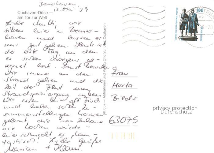 73248254 alte Postkarte Doese Kugelbake Sonnenuntergang Kurkonzert Kurpark Jan Cux Express Touristenbahn Nordseeheilbad postalisch gelaufen Erhaltung siehe scans [FriedD77] KatCode: 11110003352011