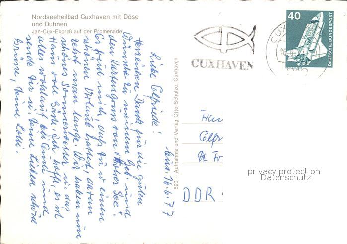 72367018 alte Postkarte Doese Nordseeheilbad Duhnen Jan Cux Express Promenade Strand postalisch gelaufen Erhaltung siehe scans KatCode: 11110003352011