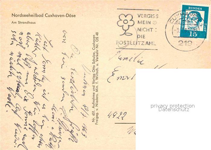 72743087 alte Postkarte Doese Nordseeheilbad Strandhaus Fliegeraufnahme postalisch gelaufen Erhaltung siehe scans [FriedD77] KatCode: 11110003352011