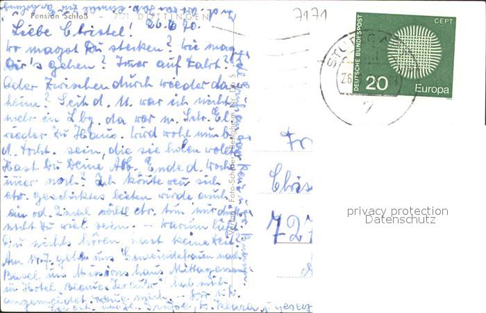 31727756 alte Postkarte Doettingen Braunsbach Pension Schloss postalisch gelaufen Erhaltung siehe scans KatCode: 11110008127009