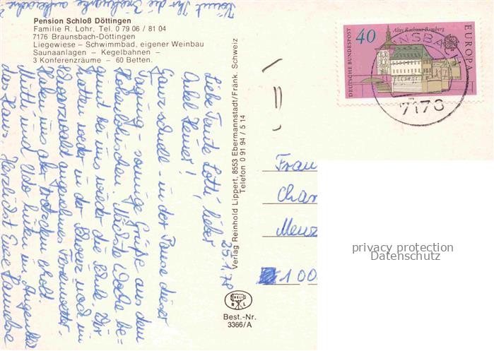 74023037 alte Postkarte Doettingen Braunsbach Schwaebisch Hall BW Pension Schloss Doettingen Gastraum Swimming Pool postalisch gelaufen Erhaltung siehe scans [FriedD77] KatCode: 11110008127009