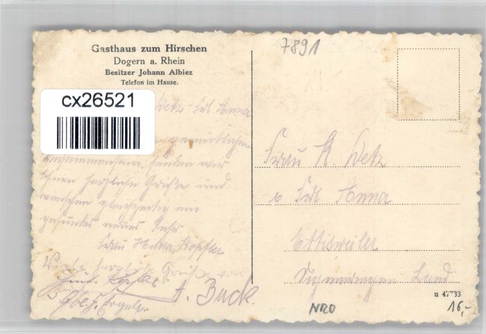 30838432 Dogern Gasthaus Hirschen postalisch nicht gelaufen KatCode: 11110008337032