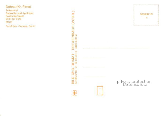 73110441 Dohna Sachsen Ratskeller Apotheke Burg Markt postalisch nicht gelaufen Erhaltung siehe scans [NatalD47] KatCode: 11110014287100