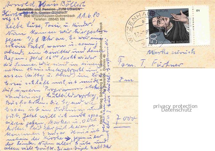 74110946 alte Postkarte Dohrenbach Witzenhausen Hessen Gaststaette Zum Loewen Panorama Waldpartie Stute mit Fohlen postalisch gelaufen Erhaltung siehe scans [WerneD78] KatCode: 11110006636016