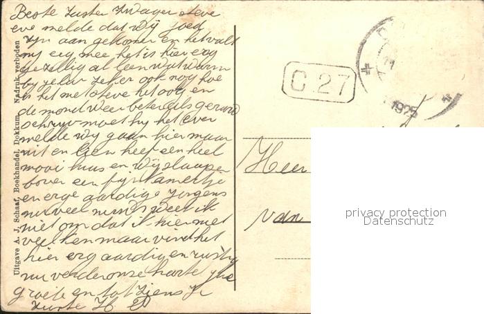 old postcard Dokkum Bonifaciusfontein Brunnen postalisch gelaufen Erhaltung siehe scans