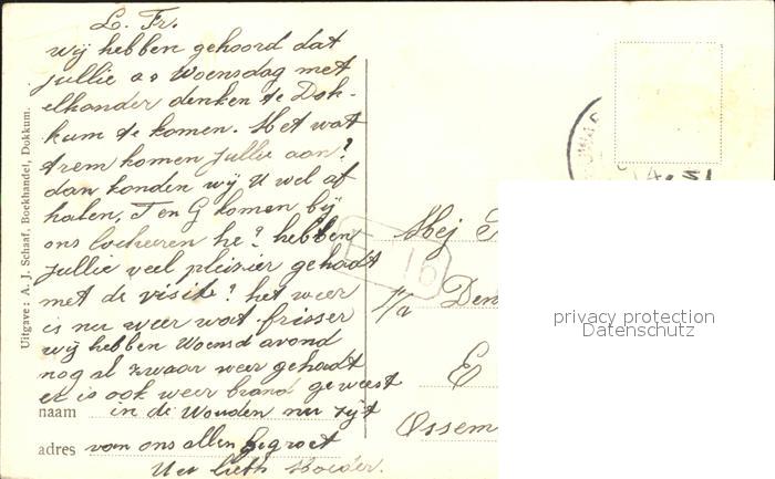 old postcard Dokkum Bonifaciusfontein Brunnen postalisch gelaufen Erhaltung siehe scans