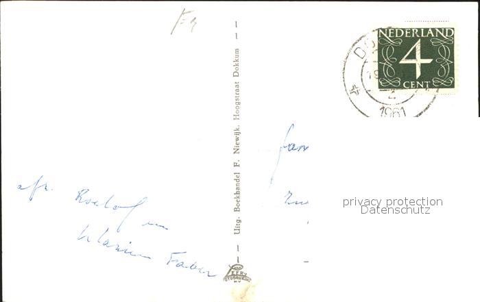 alte Postkarte Dokkum Grootdiep Stadthuis postalisch gelaufen