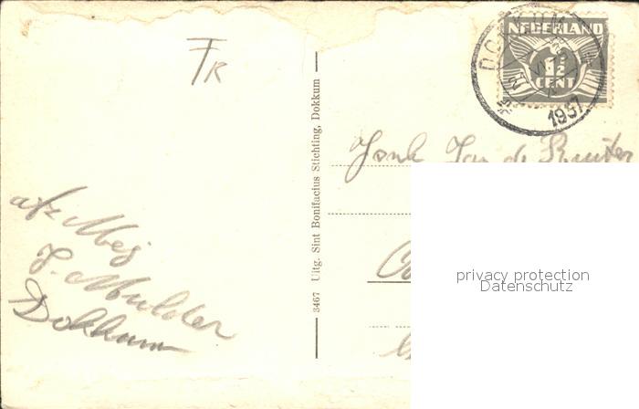 alte Postkarte Dokkum Ingang processiepark Fahne postalisch gelaufen
