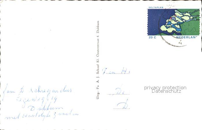alte Postkarte Dokkum Kade Stadsgracht Strobosserweg postalisch gelaufen Erhaltung siehe scans