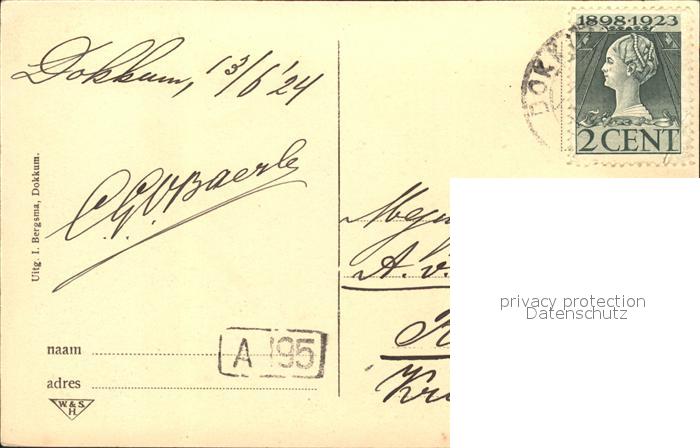 old postcard Dokkum Trouwzaal Stadhuis Saal Rathaus Wandgemaelde Kronleuchter postalisch gelaufen Erhaltung siehe scans