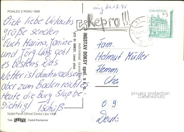 old postcard Doksy Hirschberg See Tschepelberg postalisch gelaufen Erhaltung siehe scans
