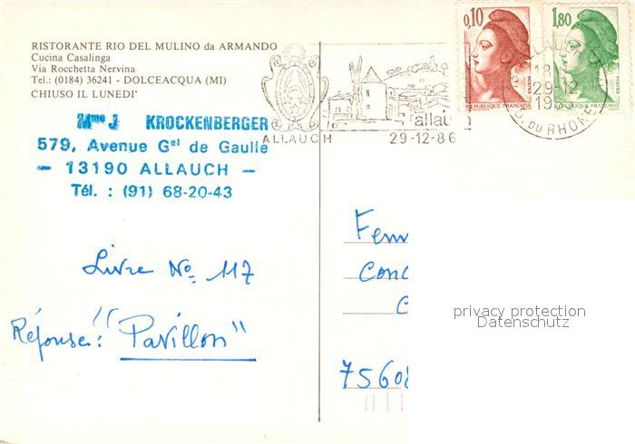 old postcard Dolceacqua Restaurant Rio del Mulino postalisch gelaufen Erhaltung siehe scans [KathaD81]
