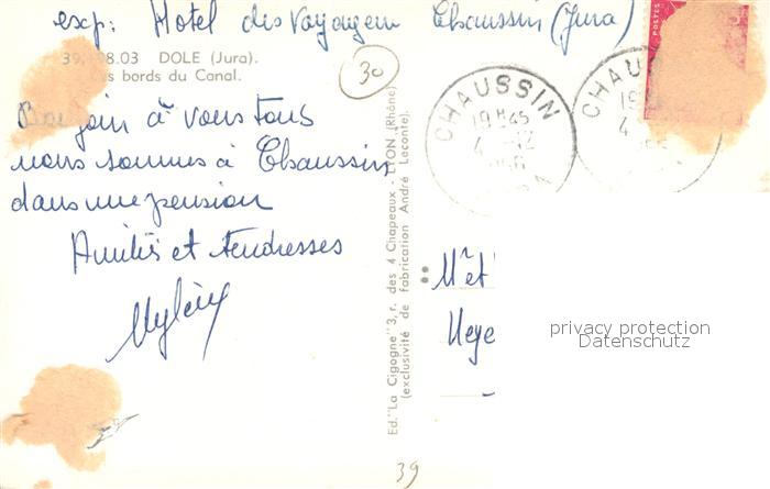 13504074 carte postale Dole Jura Aux bords du Canal postalisch gelaufen Erhaltung siehe scans [FriedD77] KatCode: 11170039139198