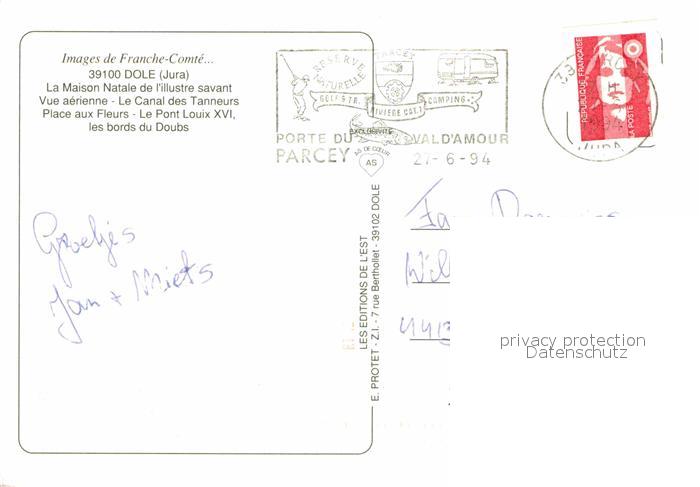 12711789 carte postale Dole Jura Maison Natale de l’illustre savant vue aerienne Canal des Tanneurs Place aux Fleurs Pont Louix XVI Bords du Doubs postalisch gelaufen Erhaltung siehe scans [FriedD77] KatCode: 11170039139198