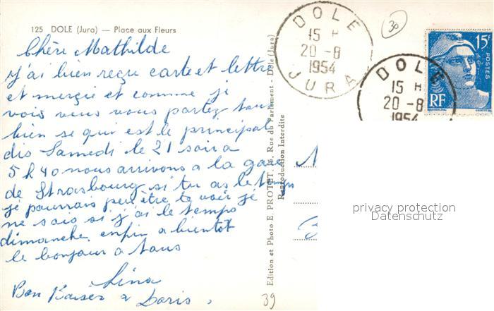 13504073 carte postale Dole Jura Place aux Fleurs postalisch gelaufen Erhaltung siehe scans [FriedD77] KatCode: 11170039139198