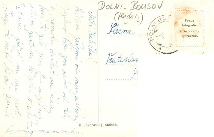 73959614 old postcard Dolni Bousov Mlada Boleslav Jungbunzlau CZ Teilansicht postalisch gelaufen Erhaltung siehe scans [FriedD77] KatCode: 11520