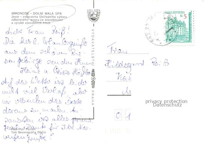 74088032 old postcard Dolni Mala Upa Kleinaupa CZ Javor zotavovna Ustredniho vyboru odboroveho postalisch gelaufen Erhaltung siehe scans [WerneD78] KatCode: 11520