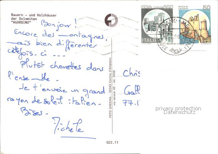 old postcard Dolomiten Agordino Holzhaeuser postalisch gelaufen Erhaltung siehe scans