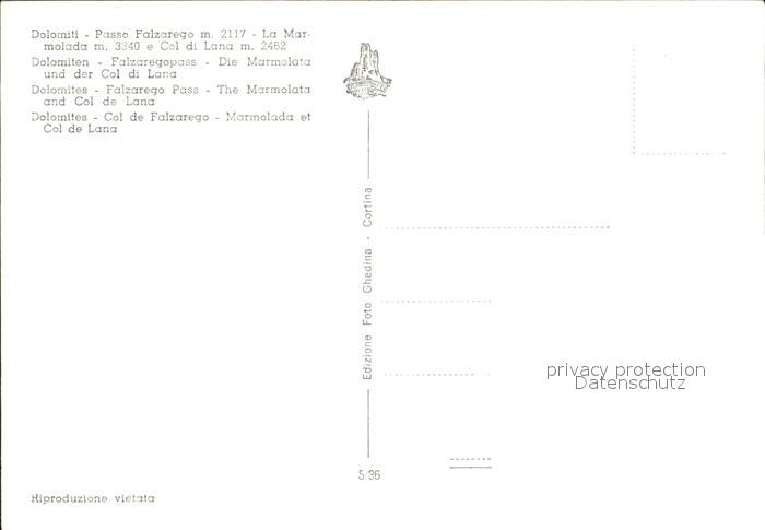Dolomiten Falzaregopass mit Mormolata und Col di Luna postalisch nicht gelaufen Erhaltung siehe scans