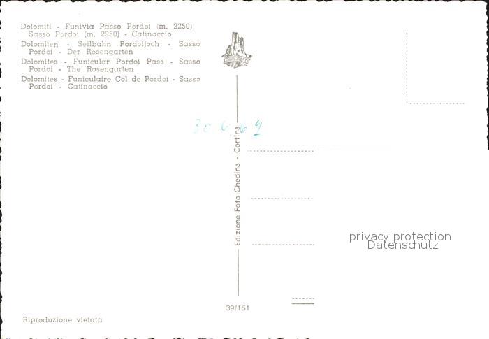 Dolomiten Funivia Passo Pordoi postalisch nicht gelaufen Erhaltung siehe scans