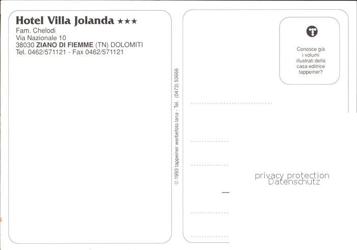 Dolomiten Hotel Villa Jolanda Ziano di Fiemme postalisch nicht gelaufen Erhaltung siehe scans
