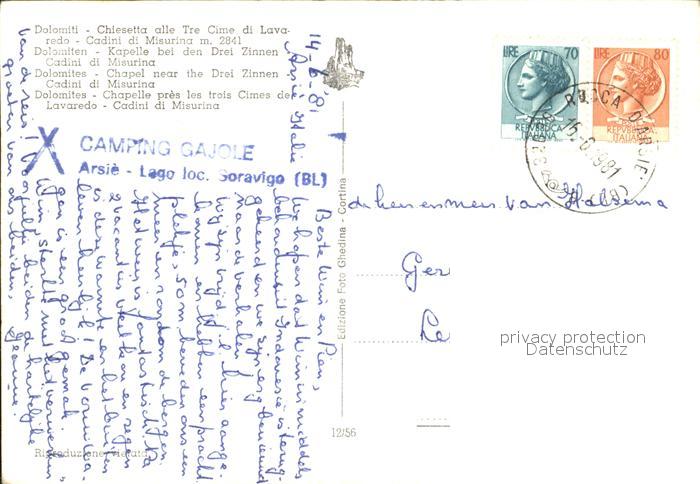 old postcard Dolomiten Kapelle bei den Drei Zinnen Cadini di Misurina postalisch gelaufen Erhaltung siehe scans