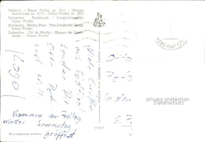 old postcard Dolomiten Pordoijoch Langkofelgruppe postalisch gelaufen Erhaltung siehe scans