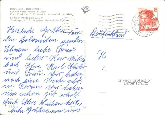 old postcard Dolomiten Seilbahn Passo Pordoi postalisch gelaufen Erhaltung siehe scans