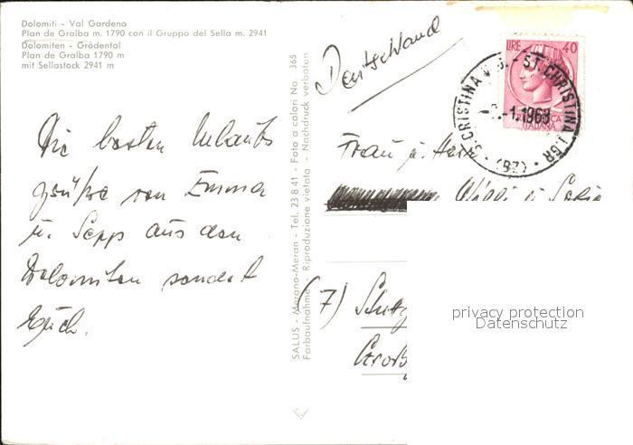 old postcard Dolomiten Sellastock Groedental postalisch gelaufen Erhaltung siehe scans