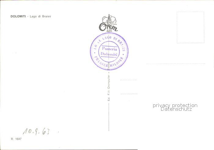 Dolomiti Lago di Braies postalisch nicht gelaufen Erhaltung siehe scans