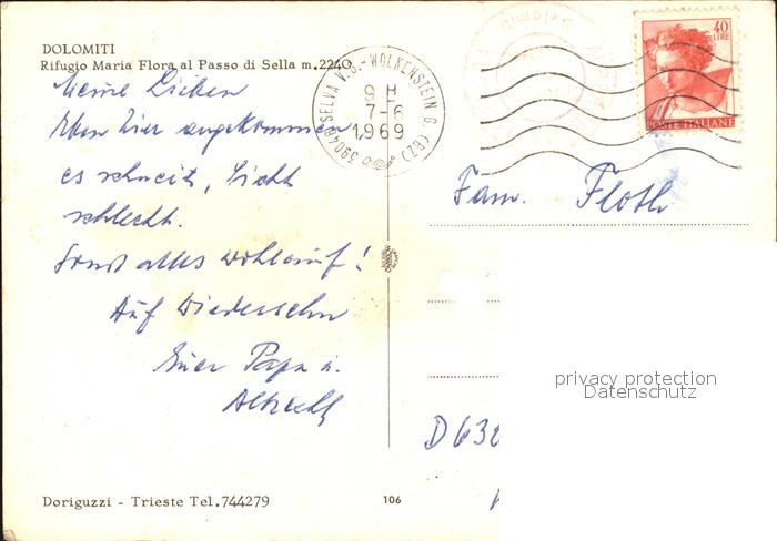 old postcard Dolomiti Rifugio Maria Flora Passo di Sella postalisch gelaufen Erhaltung siehe scans